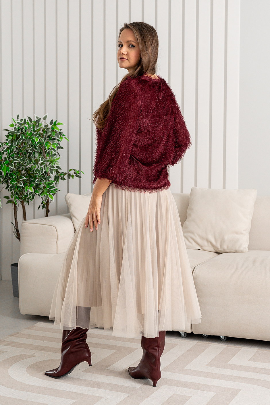 Ткань: трикотажное полотно "травка". Джемпер прямого покроя , с круглым вырезом, рукав втачной,3/4. Длина изд. ок.63см.