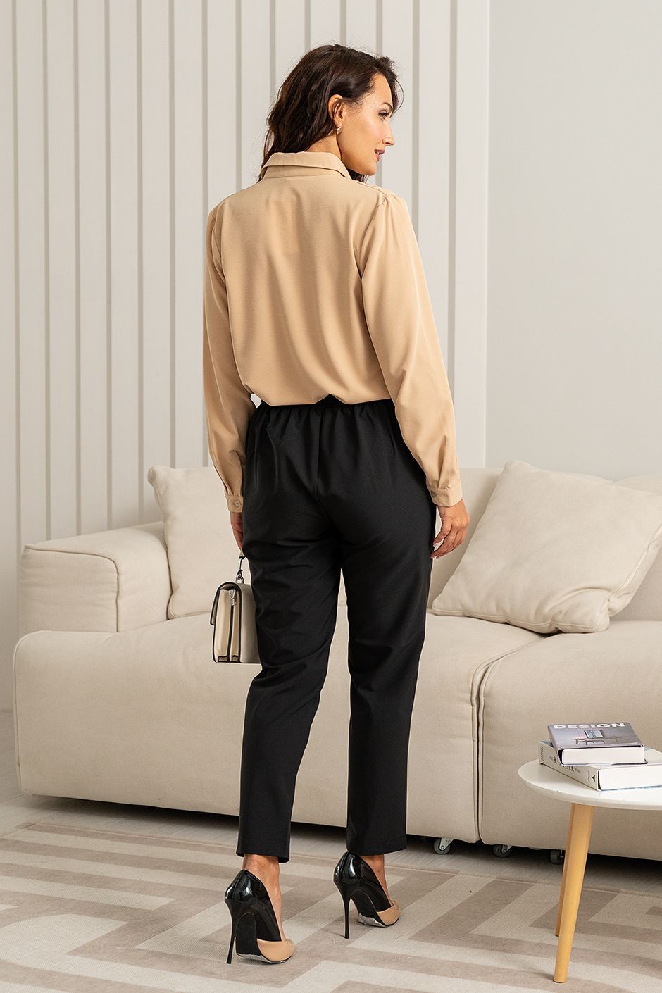 Ткань: креп-шелк.Блузка прямого покроя,спереди капелька на застежке, в плечевом шве складки . Рукав длинный на манжете. длина изделия ок.62см.