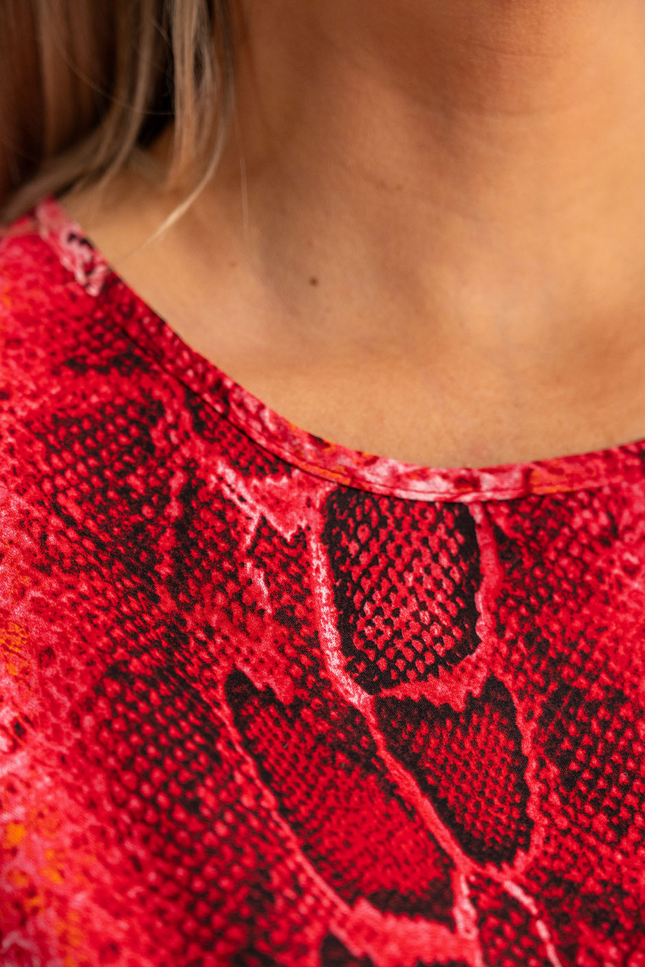 Ткань: искусственный шелк, набивной. Блуза простого свободного покроя, с цельнокроеным  рукавом. Рукав короткий. Длина ок. 60 см.