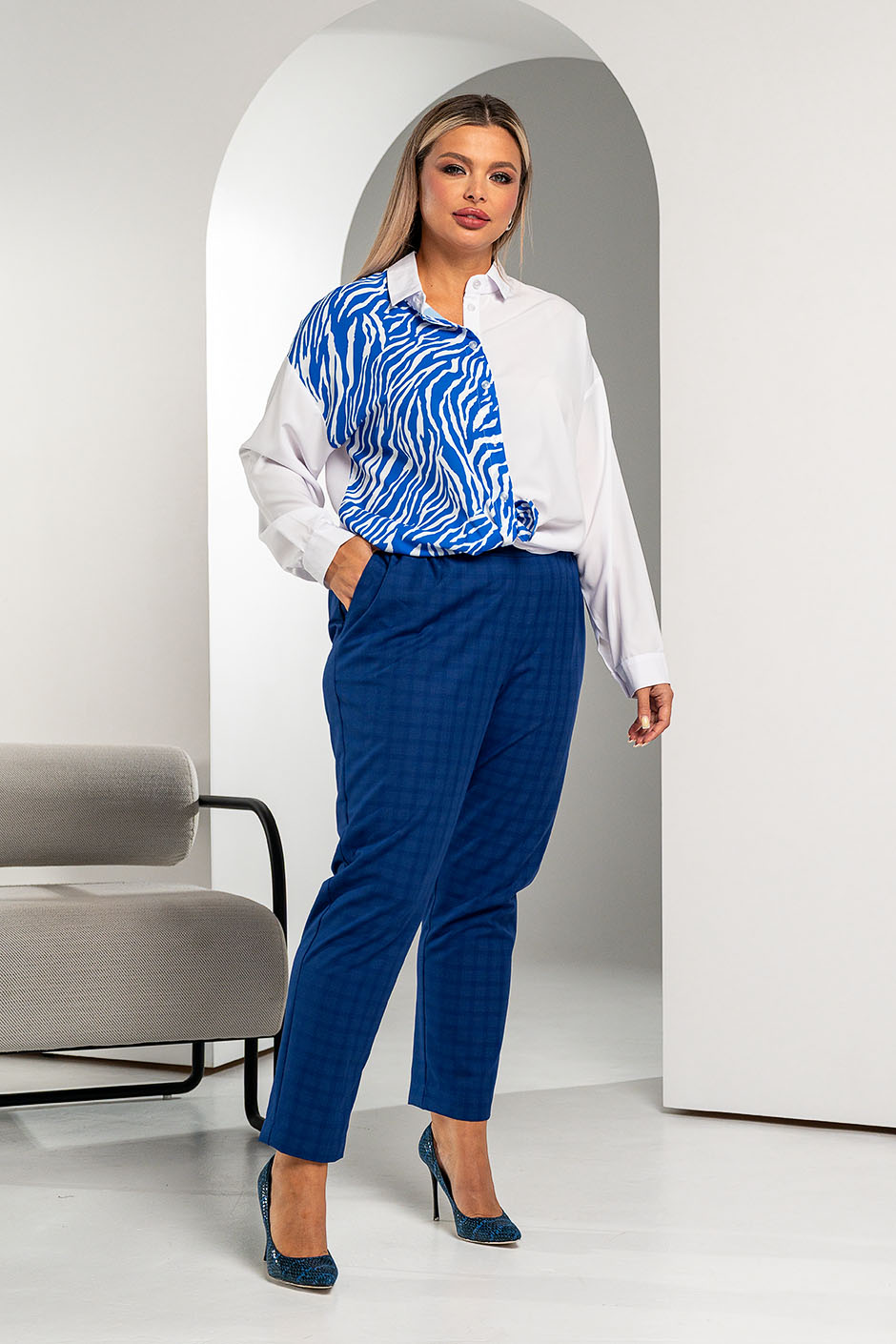 Брюки РБ-651 клетка синяя